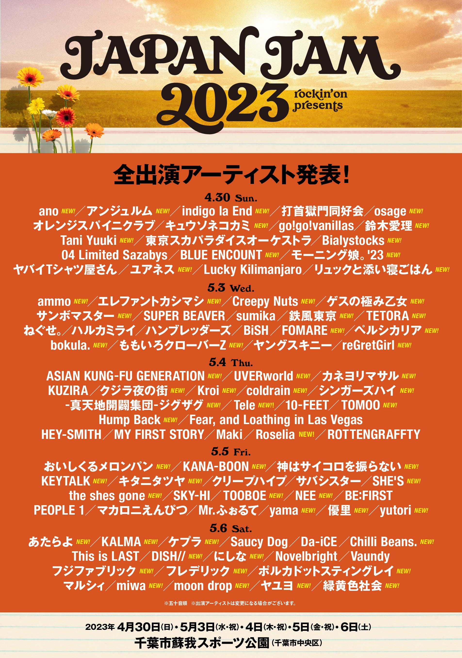 GWの大型野外フェスJAPAN JAMに出演決定!